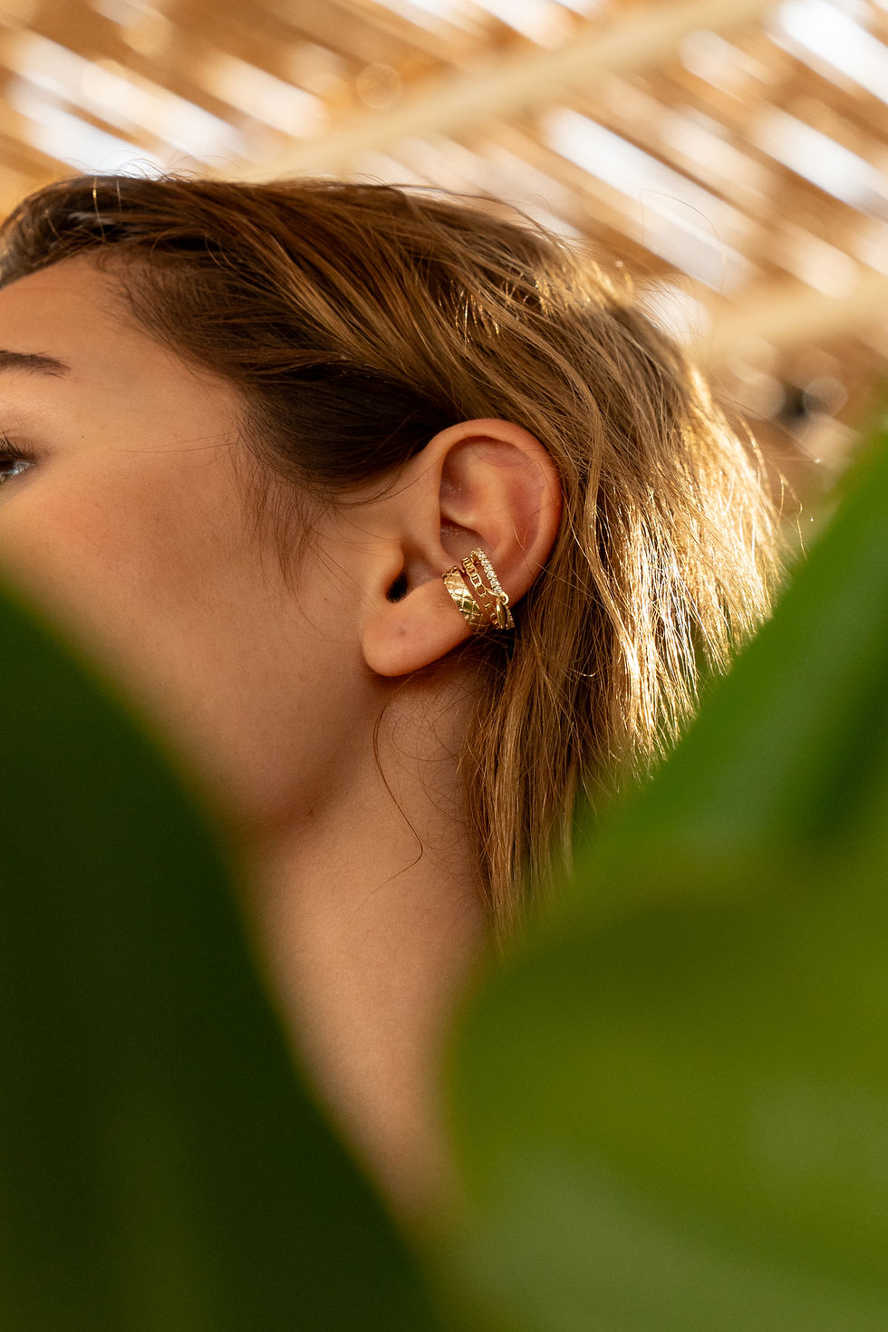 Çelik Gold Kapitone Desenli 3 Sıra Earcuff (Tek)